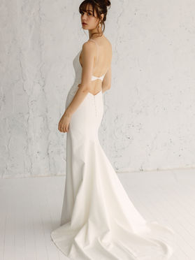 Kaizen is unapologetically feminine and refined with an unmistakable edge. Features a V-neckline with delicate spaghetti straps and a modern key-hole back. A cinched-in waist gives way to a dropped A-line skirt which hugs the high hips and flares out into a dramatic skirt.​